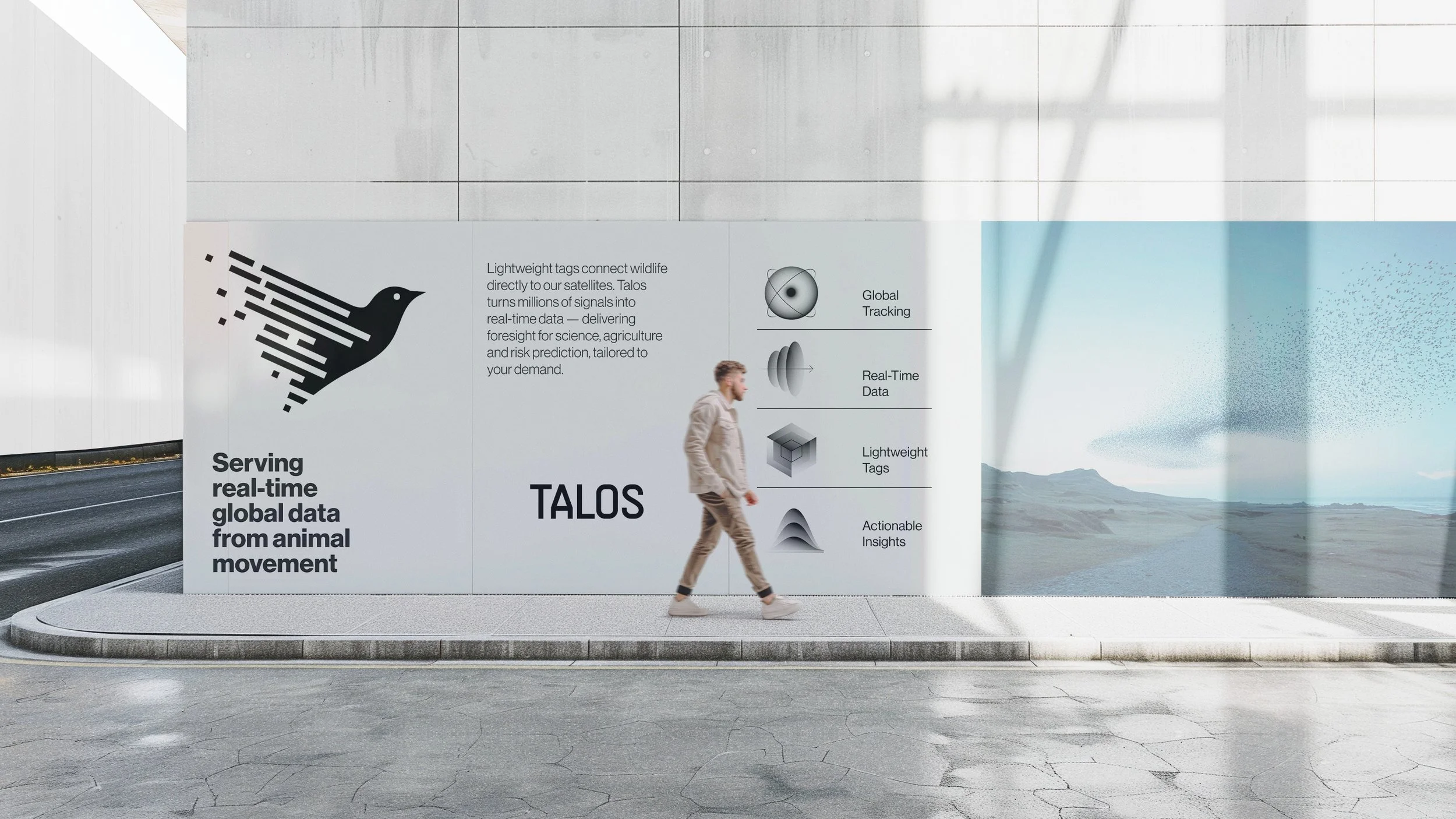 Talos Space is a data platform translating animal movement into real-time data. I developed the logo and brand identity at the intersection of organic and digital systems. The visual language is light, clear, and positive in tone, focused on precision, scalability, and clarity across digital, spatial, and print applications.